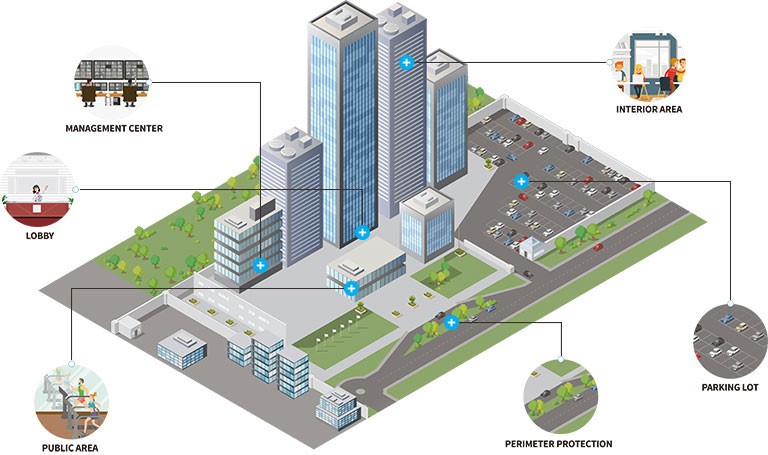 Building is a venue for social activities such as economic, productive, cultural and entertainment activities. A comprehensive and sophisticated building surveillance solution should take the specific social activities and personal behavior into consideration. It needs to protect the privacy of individuals, and meanwhile be able to cover all critical areas without any blind spot.